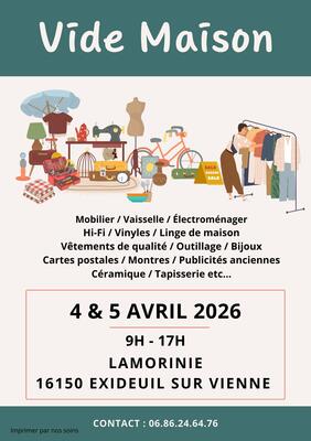 Jolie vide maison samedi et dimanche 4 et 5 avril 2026 de 9h à 17