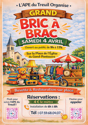L’ape du treuil organise son grand bric à brac le samedi 4 avril sur la place de l’église à gond-pontouvre.