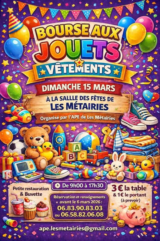 Bourse aux jouets organisée par ape les métairies