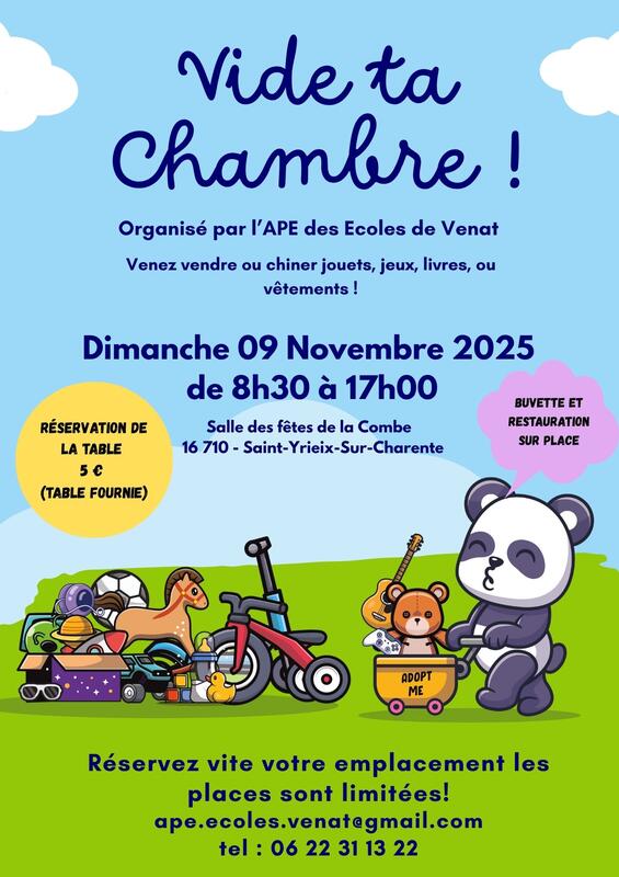 Dimanche 9 novembre à partir de 8h30 à la salle des fêtes la combe (152 rue jean et constant priolaud, 16710 saint-yrieix-sur-charente)