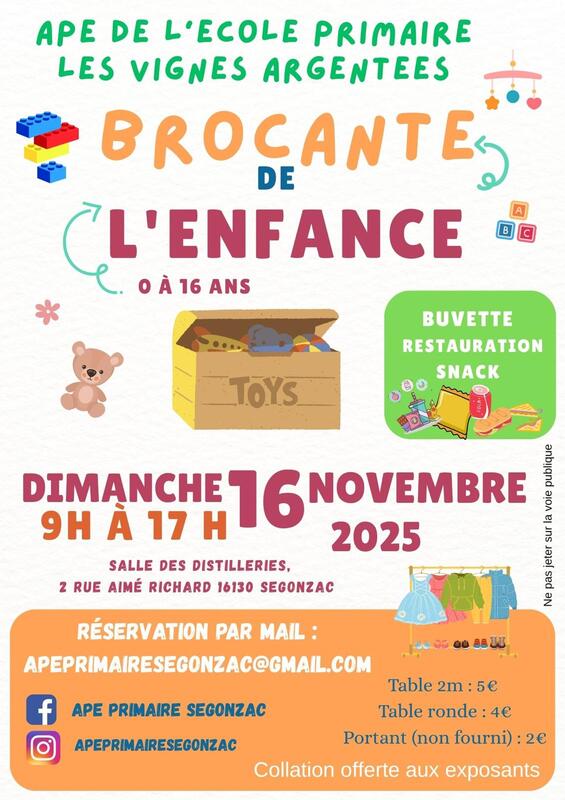 Organisée par l’ape de l’école primaire les vignes argentées, cette journée promet de jolies découvertes, des bonnes affaires et de la bonne humeur à partager