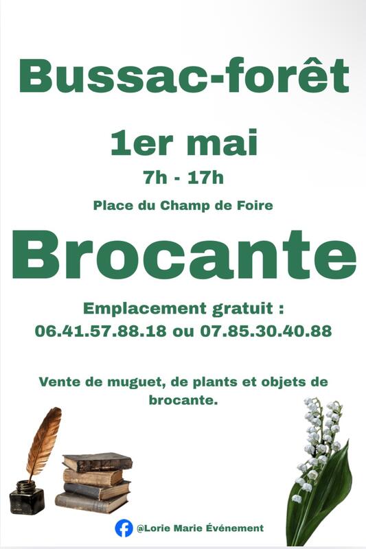 Brocante et vente de muguet 1er a bussac-forêt.
