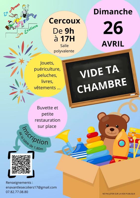 L'association de parents d'élèves de l'école de cercoux en avant les écoliers organise son premier vide ta chambre!