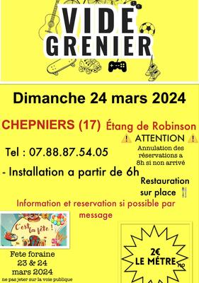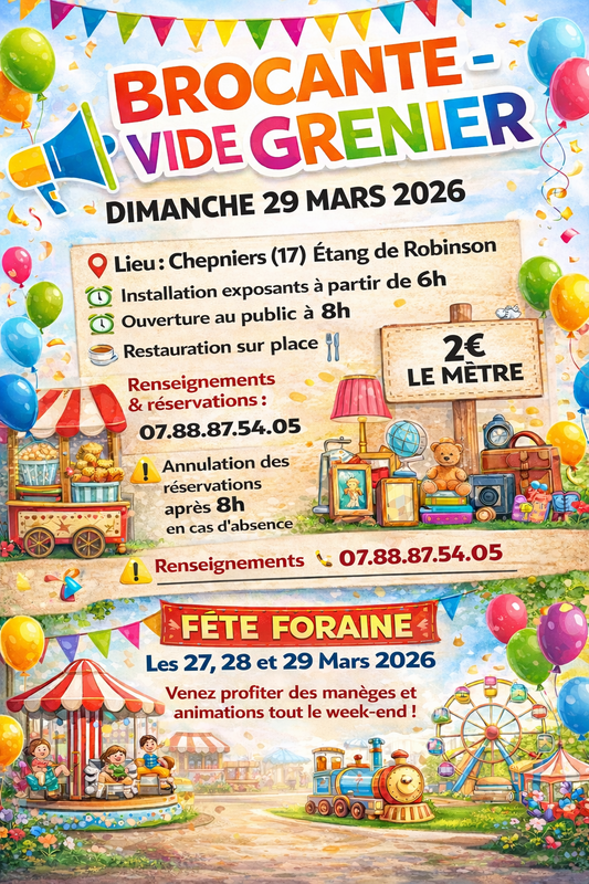 Vide grenier - brocante , le 29 mars en même temps que la fête foraine , restauration sur place avec toilette