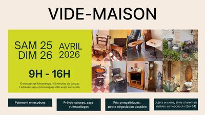 Nous organisons un vide maison du samedi 25 au dimanche 26 avril 2026, de 9h à 16h.
