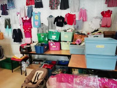 Braderie de vêtements, chaussures, linge de maison, vaisselle et bibelots, jouets et livres toujours renouvelée.