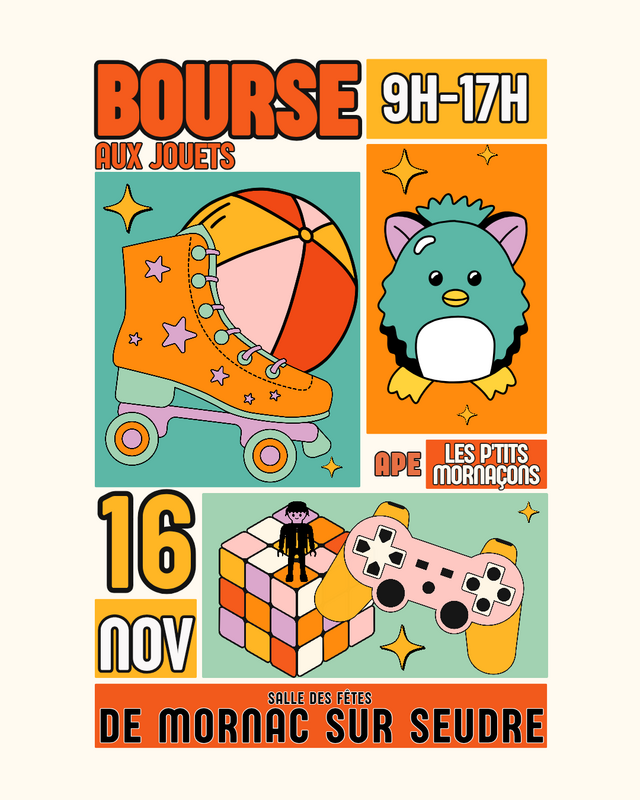 Bourse aux jouets de 9h à 17h organisée par l'association des parents d'élèves de mornac-sur-seudre
