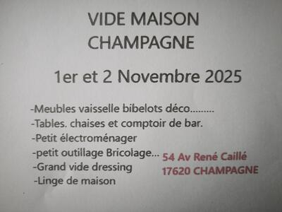 Bonjour vide maison sur trois salles meubles... Table chaises etc.. Petit électroménager outillages bricolage grand vide dressing linge de maison et plein d'autre chose ..