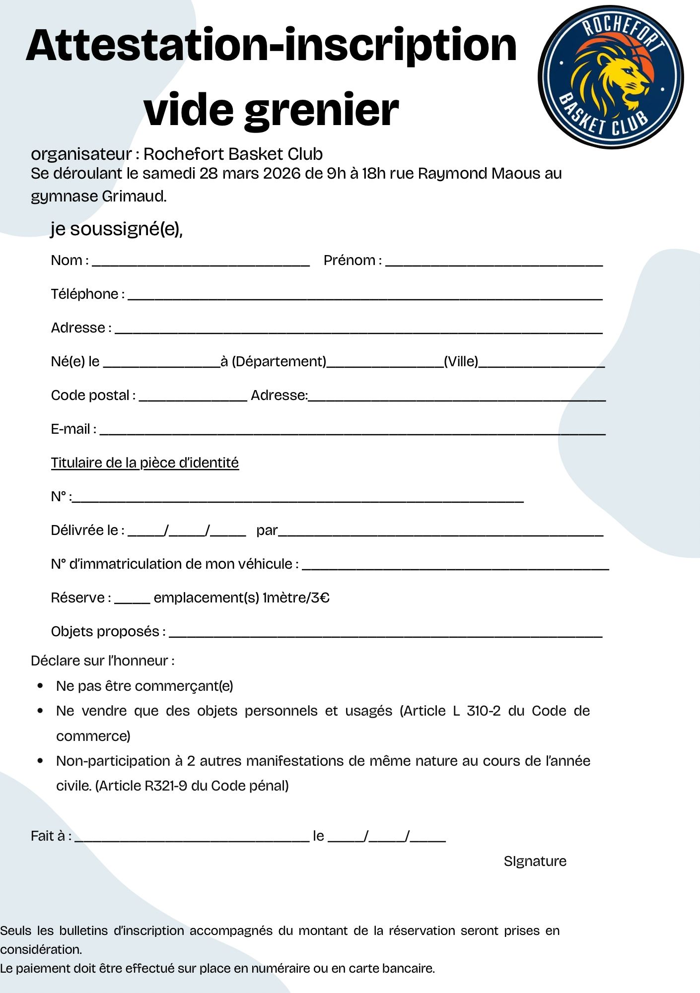 ••• Vide grenier du rochefort basket club