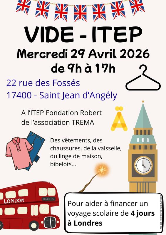 Grand vide-itep à l'itep fondation robert de l'association trema pour nous aider à financer le séjour à londres de notre uee collège : vêtements (récents et vintage), chaussures, linge de maison, vaisselle, bibelots...