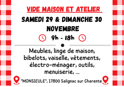 Venez découvrir de nombreux articles lors de ce grand vide-maison/atelier.