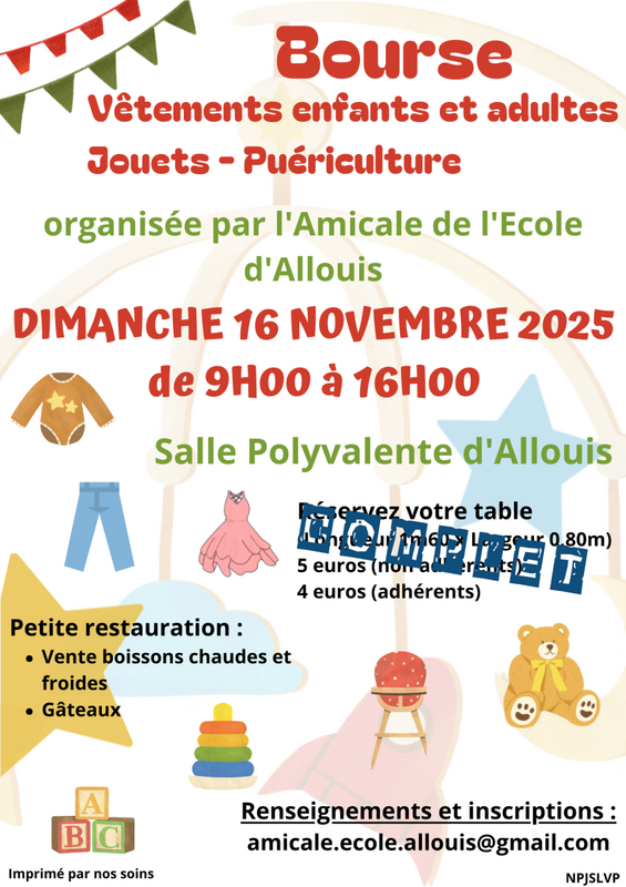 Bourse aux vêtements enfants et adultes, jouets, puériculture