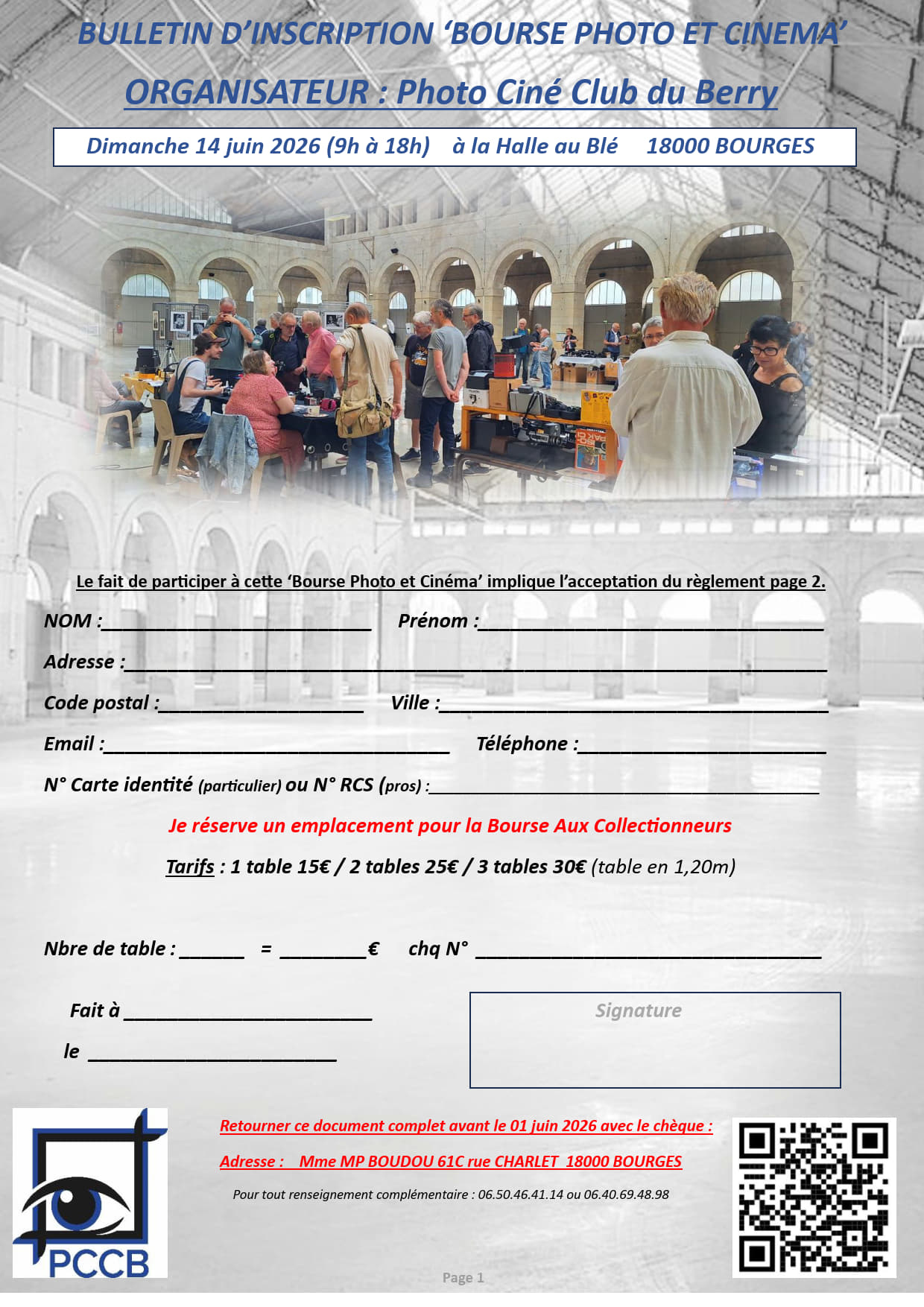 Après le succès de sa 1ère édition en 2025, qui a accueilli une dizaine d’exposants et plus de 200 visiteurs dans le lieu emblématique qu’est la halle au blé de bourges, le photo ciné club du berry réitère sa bourse photo et cinéma le
