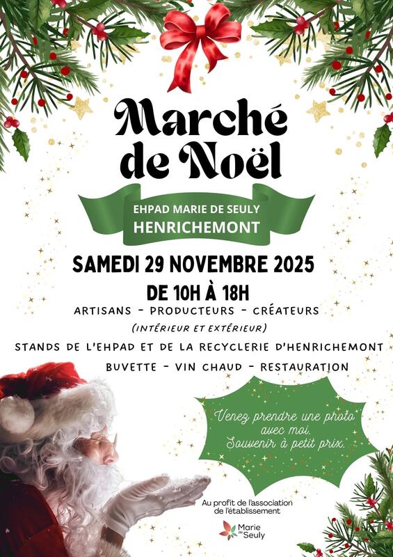 le samedi 29 novembre 2025, de 10h à 18h, plongez dans la magie des fêtes au cœur du marché de noël de l’ehpad marie de seuly à henrichemont !