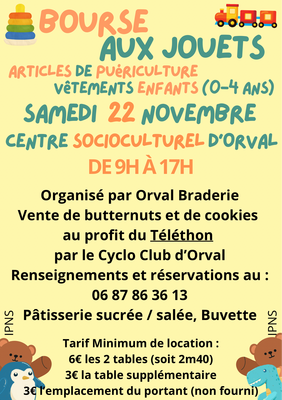 Bourse aux jouets, puériculture, vêtements enfants