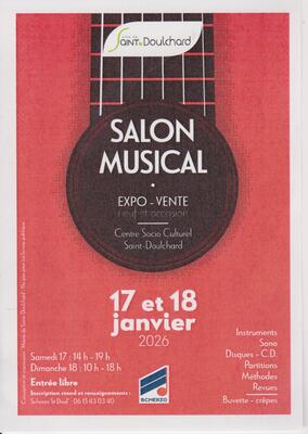 Exposition et vente : instruments, sono, disques, cd, partitions, méthodes, revues.