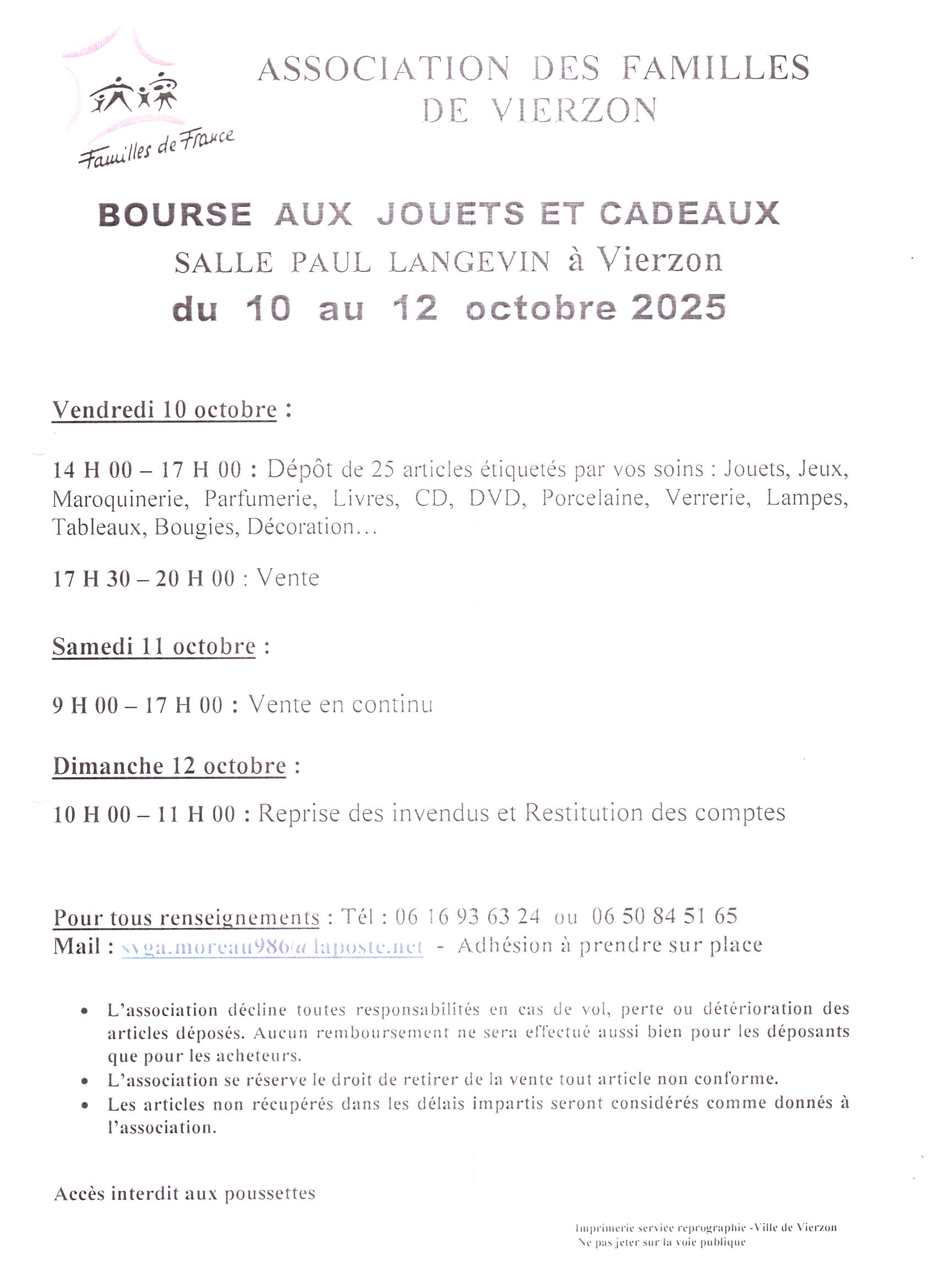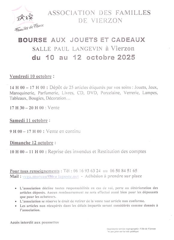 L'association des familles de vierzon vous propose des jouets, des jeux et des cadeaux à prix réduit pour toute la famille.