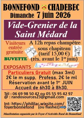 Vide grenier avec animation musicale douce, buvette et repas organisé sous chapiteau sur réservation.