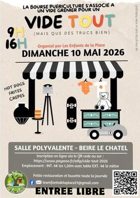 Nous vous donnons rendez-vous le 10 mai à la salle polyvalente de beire-le-châtel pour notre prochain vide tout !