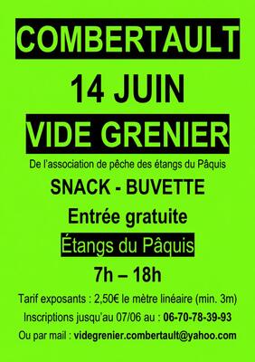 Le dimanche 14 juin, la commune de combertault accueillera la 3e édition de son vide-grenier, organisée par l’association de pêche des étangs du pâquis. De 7h à 18h, visiteurs et exposants se retrouveront dans un cadre agréable pour une journée conviviale, avec buvette et restauration sur place. L’entrée est gratuite.