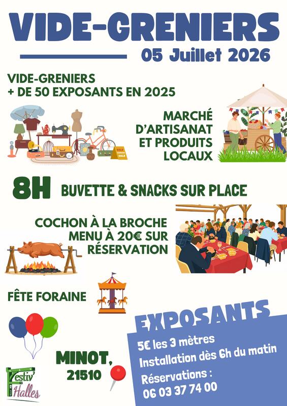 L’association festiv’halles organise son grand vide-greniers le dimanche 5 juillet 2026 à minot, en côte-d’or.
