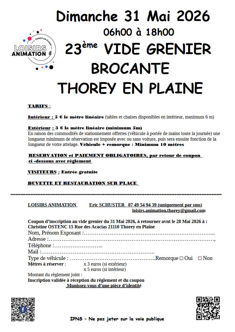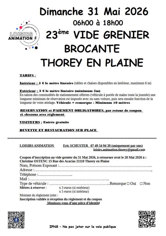 23ème vide grenier - brocante à thorey en plaine -salle polyvalente 14 rue du bois (intérieur et extérieur)