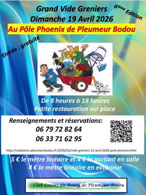 Réservation obligatoire, vide grenier intérieur et extérieur, salle chauffée, toilettes, accès handicapés, buvette, restauration sur place, parking pour les exposants.