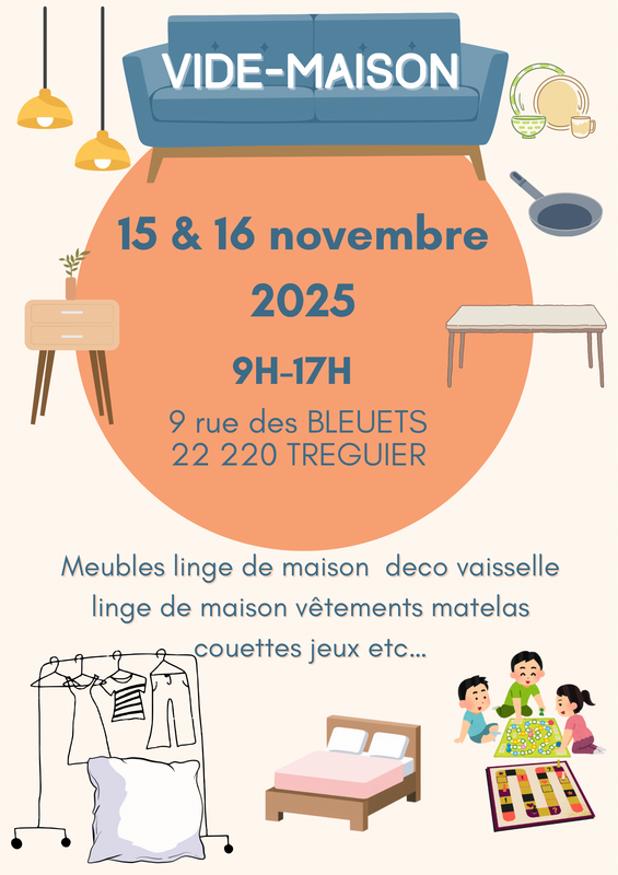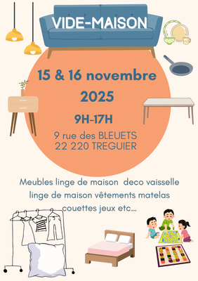 vide maison au 9 rue des bleuets ce week-end 15 et 16 novembre 2025.
