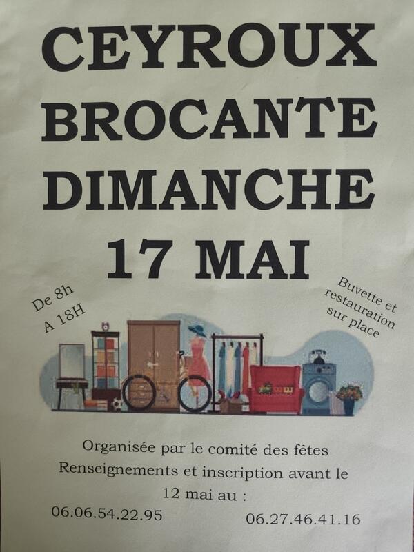 Le comité des fêtes de ceyroux organise le 17 mai 2026 une brocante
