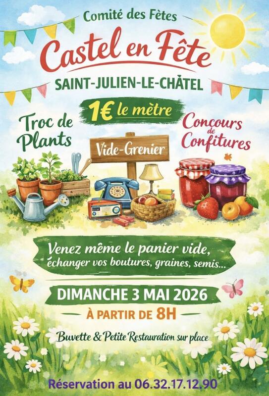 3 mai 2026 troc o' plants organisé par les habitants de saint julien, et vide grenier/concours de confitures par castel en fête. Parce qu'œuvrer ensemble c'est toujours mieux!
