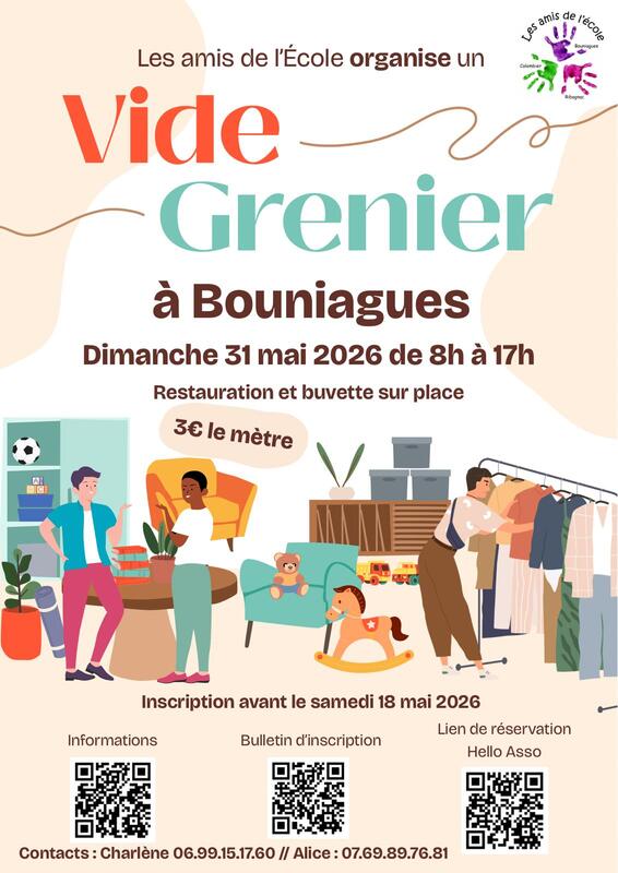 Organisé par les amis de l'école, association des parents d'élèves des écoles de bouniagues, colombier et rigagnac. Buvette et petite restauration sur place. Au profit des sorties scolaires on vous attend nombreux. N'hesitez pas à envoyer un mail à pour demander la fiche d'inscription et un document d'information. Merci