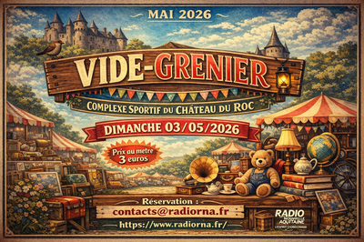 La radio nouvelle aquitaine vous invite à participer à son grand vide-grenier organisé au complexe sportif du château du roc.