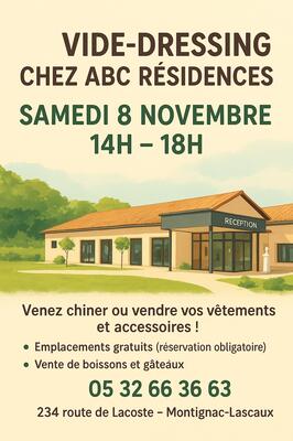 La résidence abc organise un vide-dressing convivial, ouvert à tous, le samedi 8 novembre de 14h à 18h.