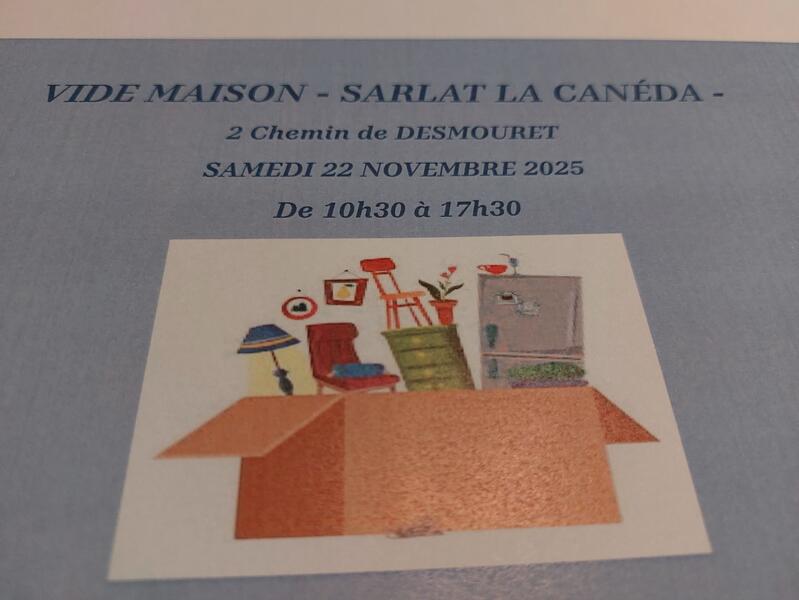 Vide maison samedi 22 novembre 2025 de 10h30 à 17h30.