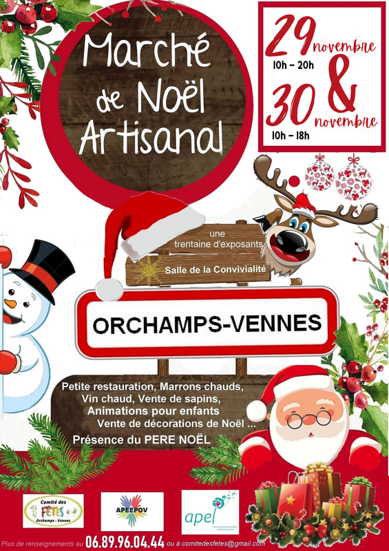 Les associations des parents d'elèves de l'école nicolas busson et de l'école publique louis pergaud, le comité des fêtes d'orchamps-vennes, organisent un marché de noël les 29 et 30 novembre salle de convivialité.