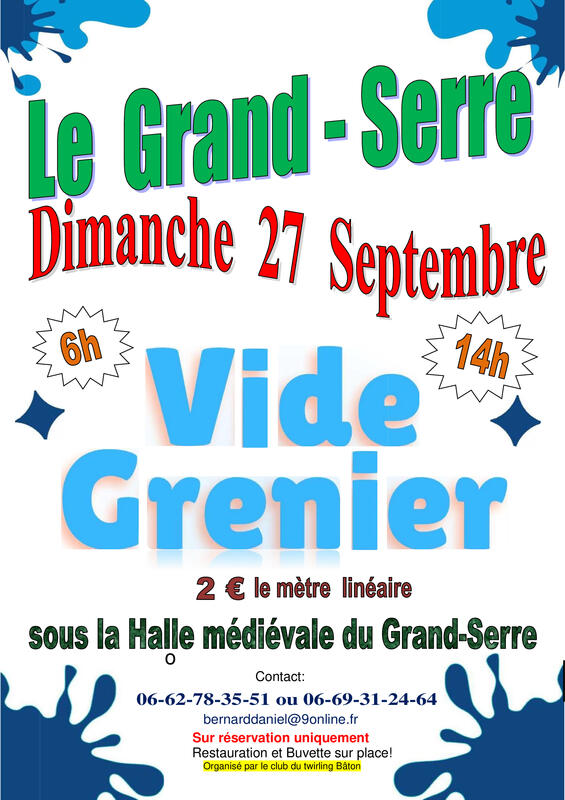 Vide grenier organisé par le club twirling le grand serre grande rue (sous la halle médiévale) abri