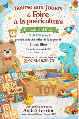Bourse aux vêtements, jeux, jouets, matériel de puériculture