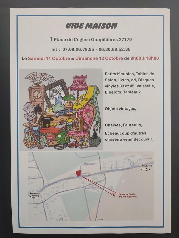 Vide grenier à domicile le 11 et 12 octobre 2025 :