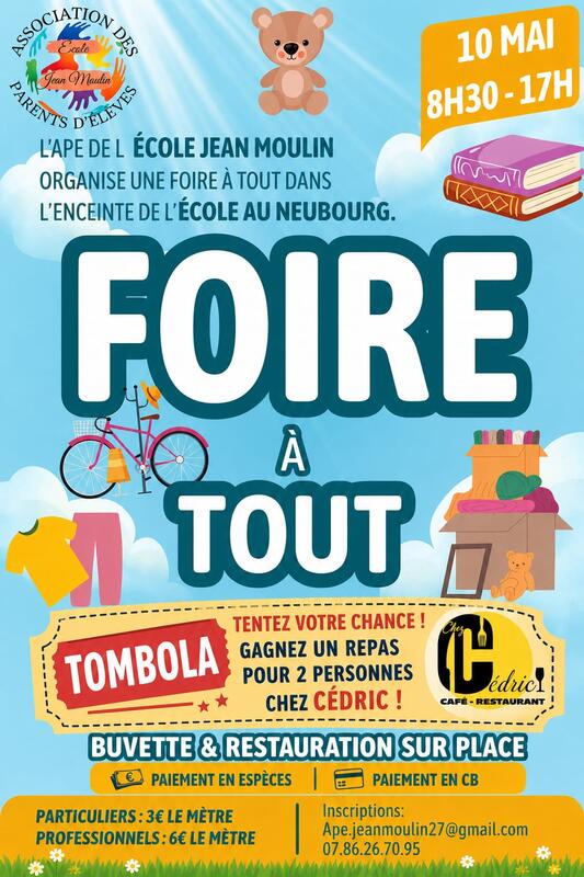 Foire à tout au sein de l'école jean moulin de le neubourg ( en face de la poste).