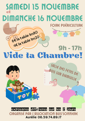Bourse aux jouets et puériculture dans la salle des fêtes de buis sur damville (morainville) de 9h à 17h pour les visiteurs, le 16 novembre.