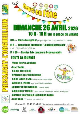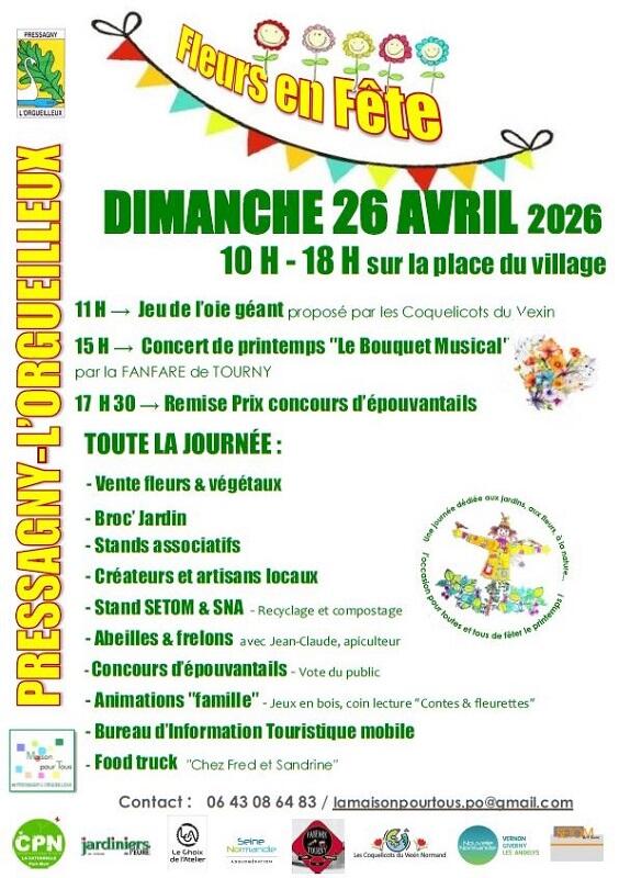 Stands associatifs, broc'jardin, ventes de fleurs, concert de printemps, animations famille, concours d'épouvantails...