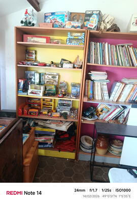 Gros lot jouets anciens miniatures neufs anciens stock ( pompiers ,militaire ,btp ,cirques et autres ) gros lot de bd ,beaucoup de bibelots ,brocantes ,nombreuses collections ,tableaux ,vieux papiers ( affiches originales le mans,l appartheid ,affiches d arts ,propagande russes et révolutions ) fringues militaires vintages ,et vêtements ,vaisselles ,nombreuses pièces de vélos courses competitions vintages ,hifi vintages ,petit électroménagers ,nombreux sacs vintages et bagageries ,déco jardins outillages etc etc possible prendre rdv avant