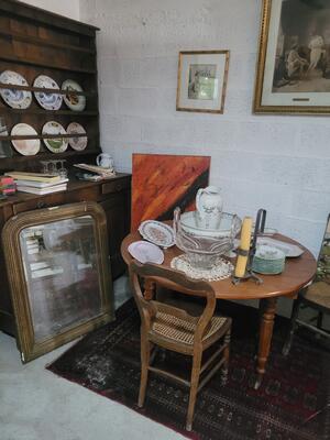 Plus de 200 m² d'exposition : vaisselle, bibelots, meubles, livres, tableaux, lampes, outillage ...... Vente à l'unité et par lots à des prix sacrifiés.