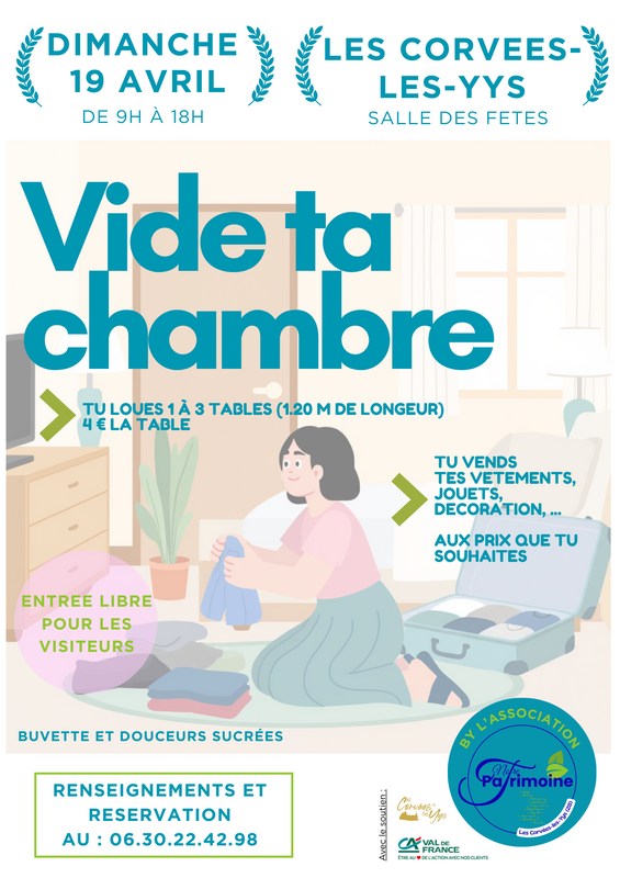 Notre patrimoine organise son “vide ta chambre” le dimanche 19 avril à la salle des fêtes des corvées-les-yys.