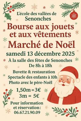 L'école maternelle des vallées de senonches organise une bourse aux jouets et vêtements. Marché de noel