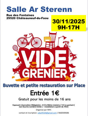 4€ le mètre linéaire tables et chaises fournis / 3€ le portant (portant non fourni)