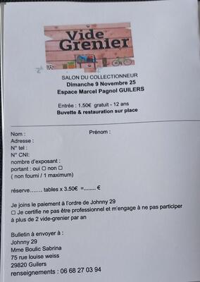 Vide grenier - salon du collectionneur organisé par l'association johnny 29.