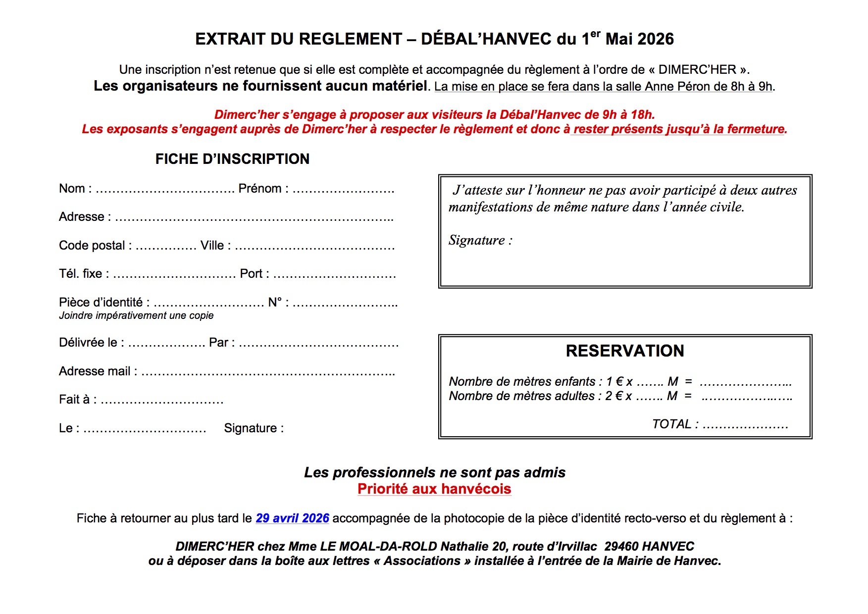 Pour la 17ème année consécutive, l'association dimerc'her vous propose un vide-grenier le vendredi 1er mai 2026.