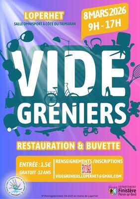 Vide greniers de l'amicale laïque de loperhet, dans les 2 salles omnisports. Parking gratuit, buvette et restauration sur place.