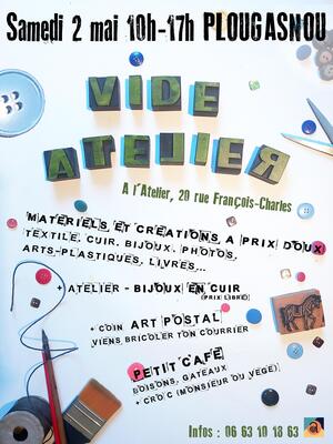 Petit vide atelier (10 exposants)... Les artisans et artistes qui tournent dedans et autour de l’ atelier (atelier cuir de sabine grangé et boutique de créateurs...), vous propose de chiner, matériels et créations a prix doux (textile, cuir, bijoux, photos, arts-plastiques, livres...)